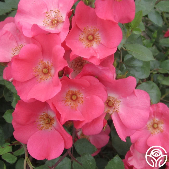 Coral Meidiland features delicately fragrant, pink buds that open into bright coral-salmon, single blooms with 5 petals each. The blooms fade into a white eye and are a favorite of pollinators. This bushy, continually blooming plant with dark green, dense foliage has excellent resistance to mildew and blackspot.