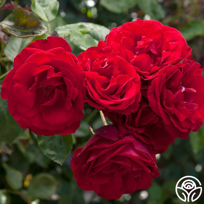 If you are looking for an overachieving, red Climber this is the rose for you. Dublin Bay has rich green foliage and is covered from spring until frost with clusters of beautiful, velvety red, semi-double, 4″ blooms of 12+ petals. Her mild fruity fragrance is an added delight to this already stunning rose.