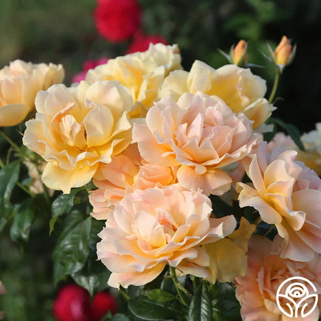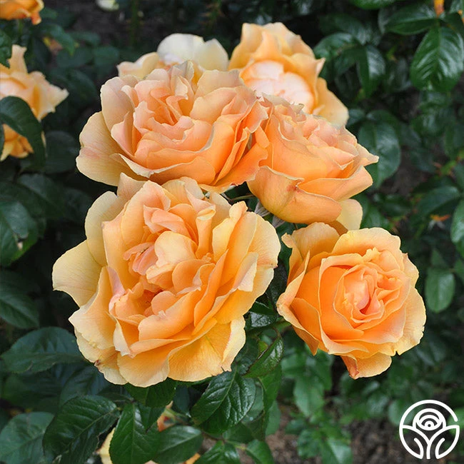 Easy Going has delightful, cupped 4-5″ blooms with 30+ petals of golden yellow with apricot to peach shading. Her flowers have a mild honey fragrance and will bloom repeatedly throughout the season against glossy, medium green foliage. She is a beautiful rose for zones 5-10.