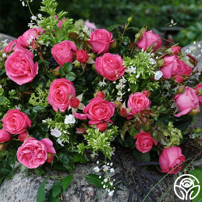 This Hybrid Tea is very resistant to diseases, including blackspot and mildew. The very large, very double, deep pink to cherry-red flowers grow in small clusters. While Fiji’s roses are lightly fragrant, she is a prolific producer. Lightly glossy, medium to dark green foliage fill in the few small gaps left by the clusters of blooms. Fiji is a more compact rose reaching about 4’ tall and 3’ wide which makes it perfect for planting in front of other plants or in a pot.