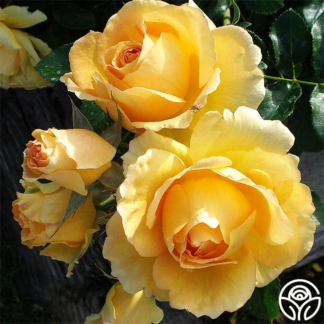 Eureka is a vigorous but compact plant with large apricot to yellow flowers that bloom continuously throughout the season. Her compact growth habit makes this rose an excellent choice for containers as well as beds and borders. We love her large clusters and gentle spice fragrance.