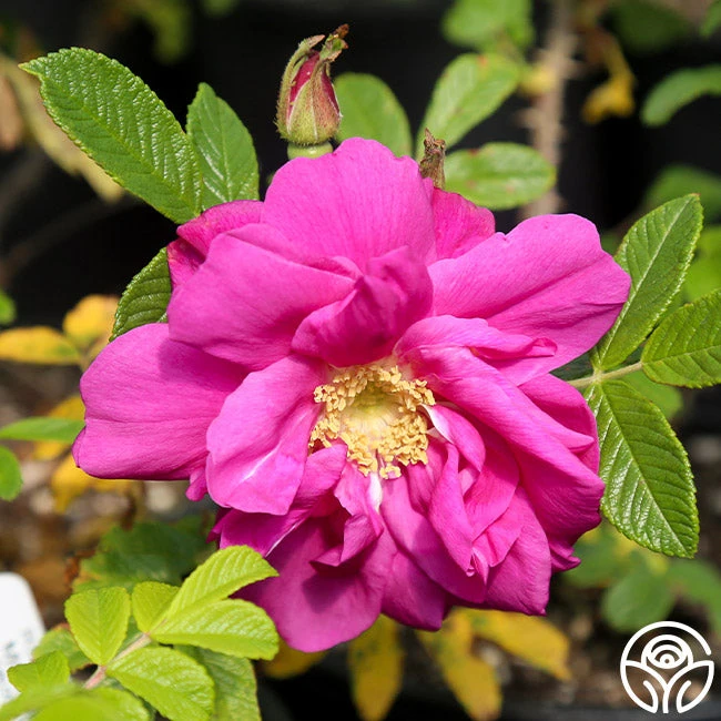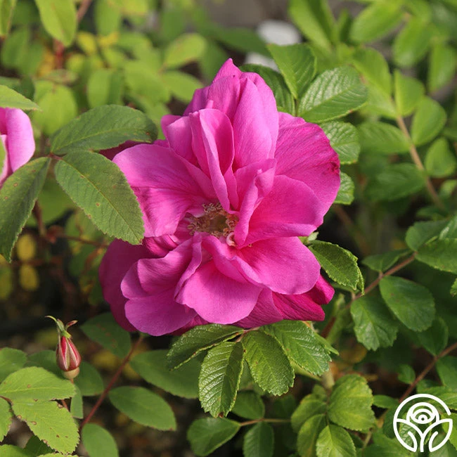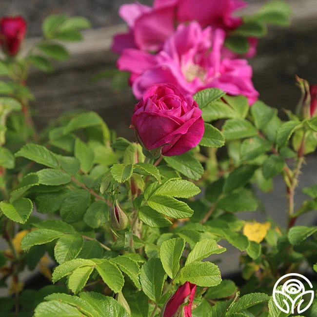 Moje Hammarberg is an excellent Rugosa, though widely unknown in the rose world. His large, violet-crimson, double blooms have a wonderfully strong fragrance and, like many rugosas, will produce both hips and blooms simultaneously in late summer. Moje Hammarberg is a repeat bloomer with strong disease resistance in zones 3-9.