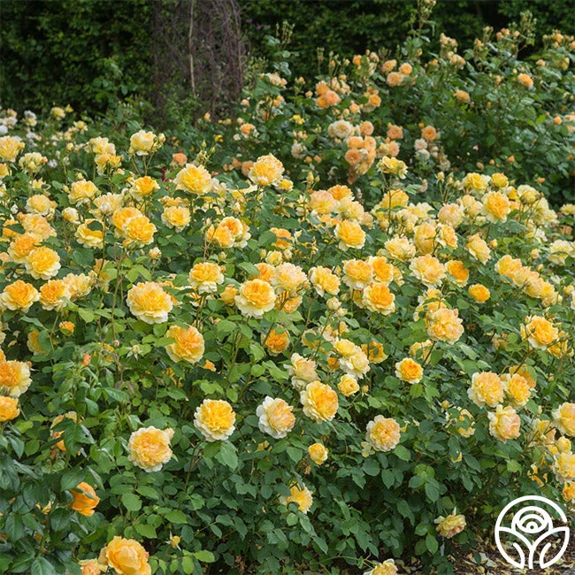 Molineux is a compact, many-petaled, golden yellow rose with 4″ blooms of 50+ petals. Her deeply colored centers are a blending of peach and apricot. She is a proficient bloomer with a wonderful fruity fragrance. Molineux is a bushy plant that will bloom continually and is perfect for smaller gardens with her compact nature. We recommend using her in mixed borders, as a low hedge, or in pots.