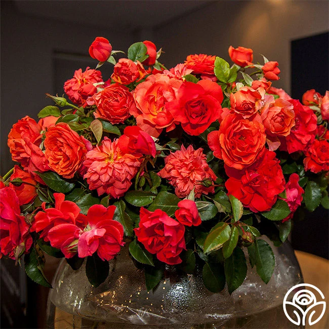 This rose was named to honor the life and legacy of world-renowned leader and peacemaker Nelson Mandela. A tall growing Floribunda with clusters of vermillion-orange flowers and a subtle but striking fragrance, the Nelson Mandela rose symbolizes the harmony of class and humility that Mandela embodied. A neat and upright growth habit makes this rose an outstanding statement piece as well as a good screen or hedge.