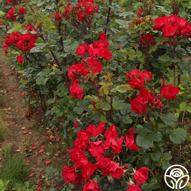 Robusta blooms in profusion with eye-catching, single, red, 4” blooms with 5-8 petals. Her clusters are produced in abundance on a vigorous, continually blooming, upright bush with beautiful, medium-green, glossy, leathery foliage. The thick canes are covered with nail-like prickles which makes Robusta an excellent fence, hedge, or impenetrable barrier. She thrives in colder zones and needs little care to thrive and grow.