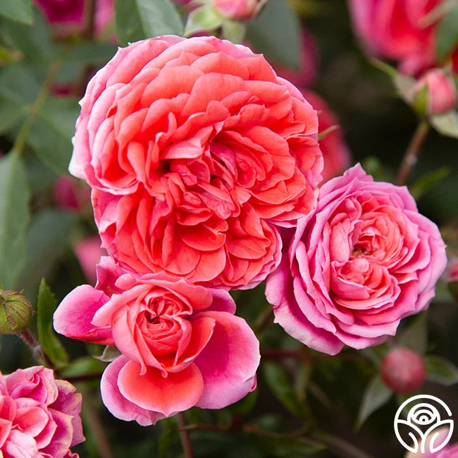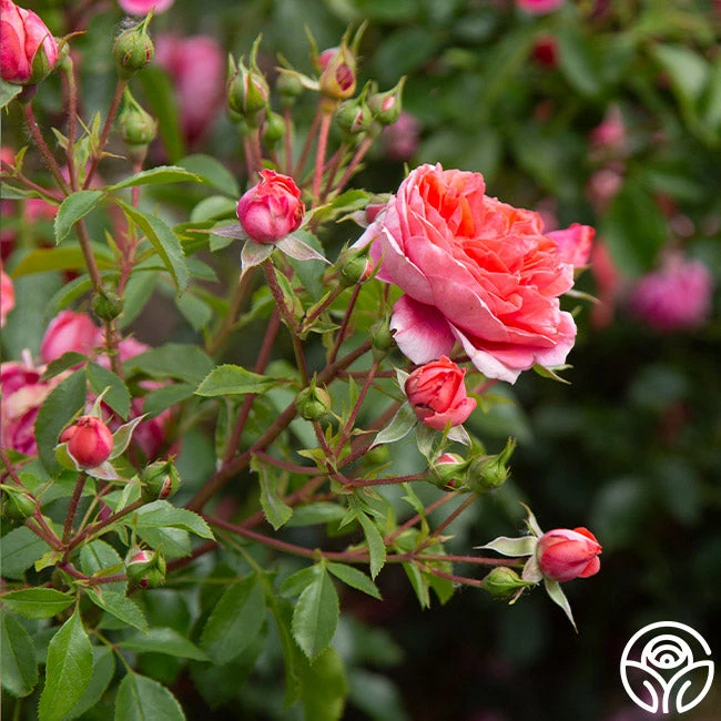Salmon-colored blooms and bright, healthy foliage make Veranda® Jolie a focal point in a small garden or a well-placed container. With a manageable growth habit and strong disease-resistance, Jolie Veranda blooms in clusters all season long. This rose is a perfect choice for small spaces.